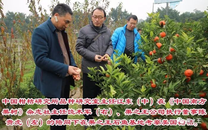 2017年12月18日上午,冬日的阳光慵懒的洒在身上,果之王公司石鱼基地迎来了一位非常重要的客人,在《中国南方果树》杂志社和果之王公司的邀请下,中国柑桔研究所品种研究室主任、育种专家、沃柑引种人江东老师来到果之王公司石鱼基地考察美国糖桔和金葵砂糖桔(早熟砂糖桔)。