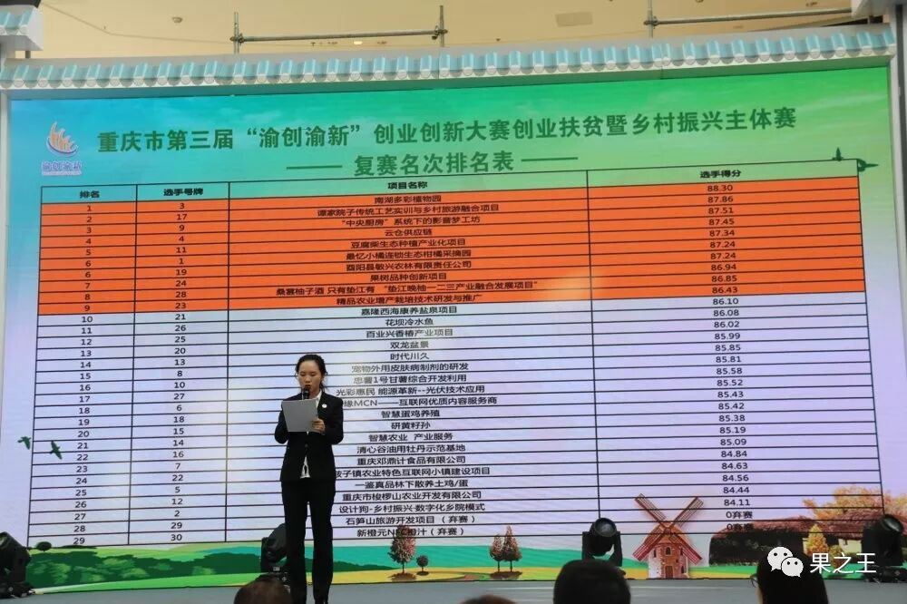 捷报 | “渝创渝新”创业创新大赛中成王果业成功进入决赛